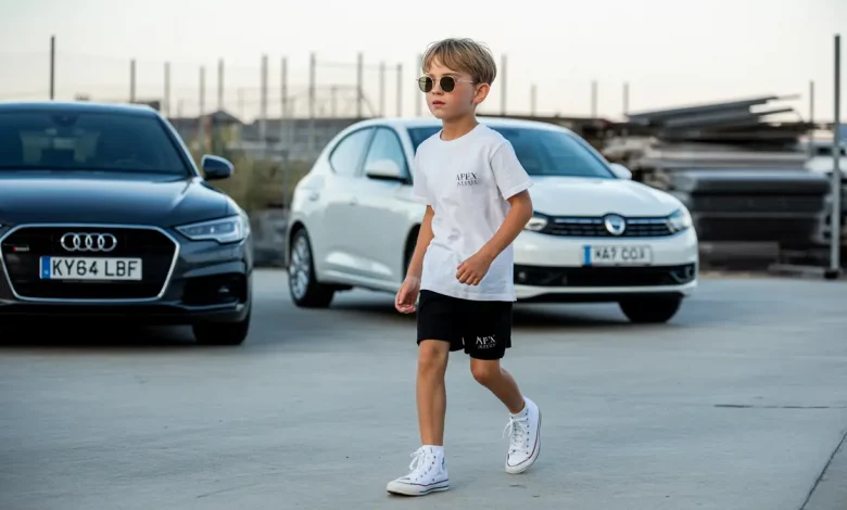 Dieser Look könnte direkt aus einem Streetstyle-Blog stammen. Der klare Fade an den Seiten sorgt für Struktur, während das längere Deckhaar lässig nach vorne gestylt ist. Was ihn besonders macht? Die Kombi mit Sonnenbrille, Oversize-Shirt und Shorts – hier stimmt einfach alles. Für Eltern, die auf der Suche nach einem echten Statement unter den trendige jungs frisuren sind, ist das hier eine perfekte Inspiration.