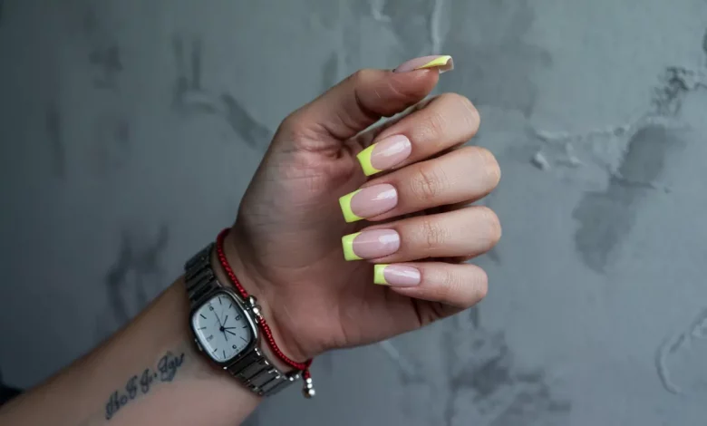 Was passiert, wenn ein klassisches French-Design einen Hauch Highlighter-Gelb abbekommt? Pure Magie. Dieser Style bringt frische Energie auf die Nägel und gehört definitiv zu den nageldesign trends 2025. Die Farbkombination aus zartem Rosé und knalligem Gelb ist leicht verspielt, aber trotzdem tragbar – besonders auf kurzen Nägeln.